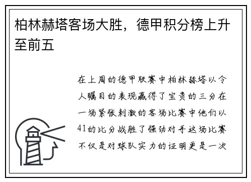 柏林赫塔客场大胜,德甲积分榜上升至前五